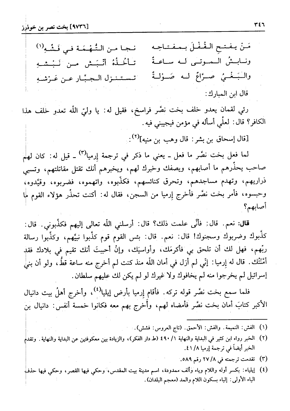 لما فعل بخت نصّر ما فعل- يعني ما ذكر في ترجمة إرميا «3» - قيل له: كان لهم صاحب يحذّرهم ما أصابهم، ويصفك وخبرك لهم، ويخبرهم أنك تقتل مقاتلتهم، وتسبي ذراريهم، وتهدم مساجدهم، وتحرق كنائسهم، فكذّبوه، واتهموه، فضربوه، وقيّدوه، وحبسوه، فأمر بخت نصّر فأخرج إرميا من السجن، فقال له: أكنت تحذّر هؤلاء القوم ما أصابهم؟