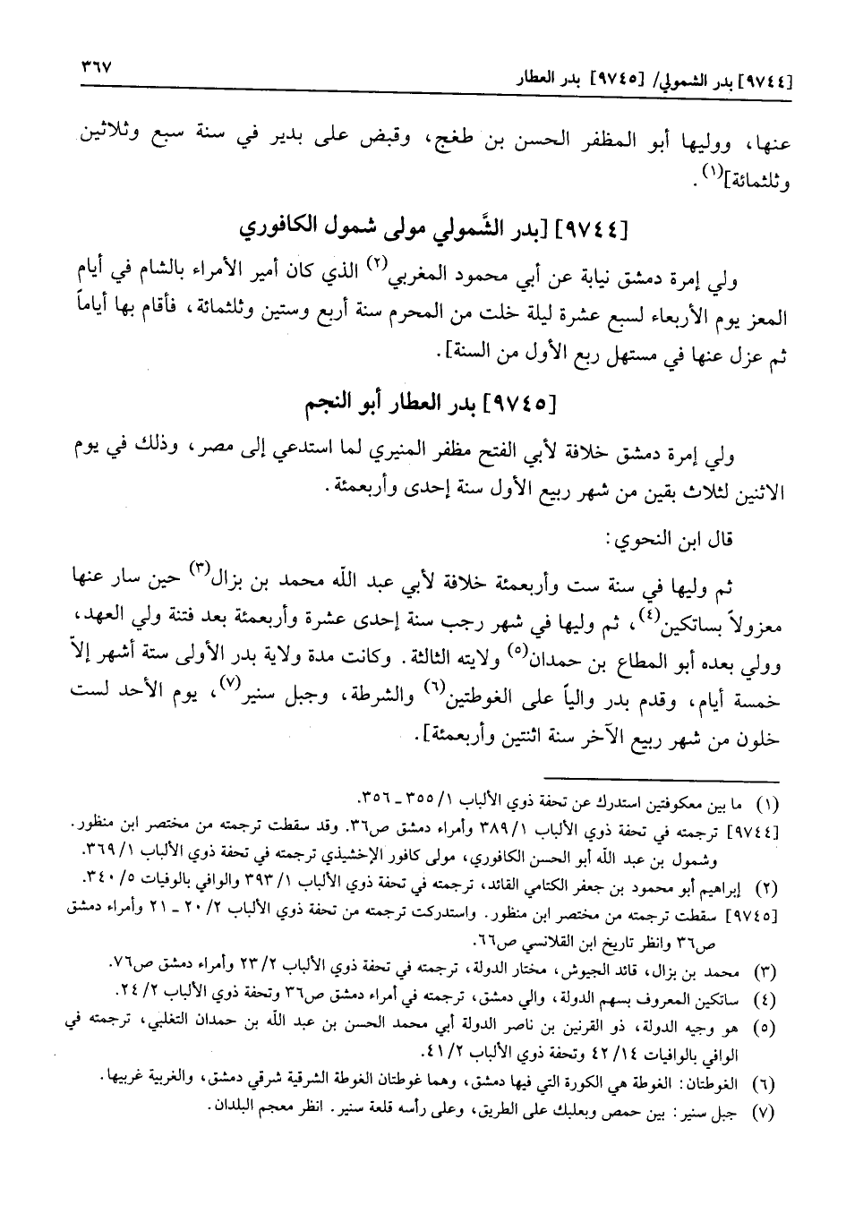 [9745] سقطت ترجمته من مختصر ابن منظور. واستدركت ترجمته من تحفة ذوي الألباب 2/20- 21 وأمراء دمشق ص 36 وانظر تاريخ ابن القلانسي ص 66.
