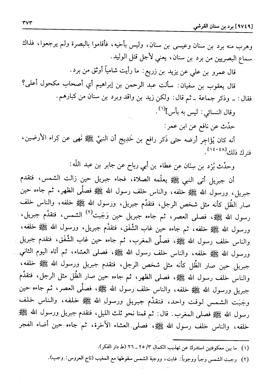 فقال: - وذكر جماعة- ثم قال: ولكن زيد بن واقد وبرد بن سنان من كبارهم.