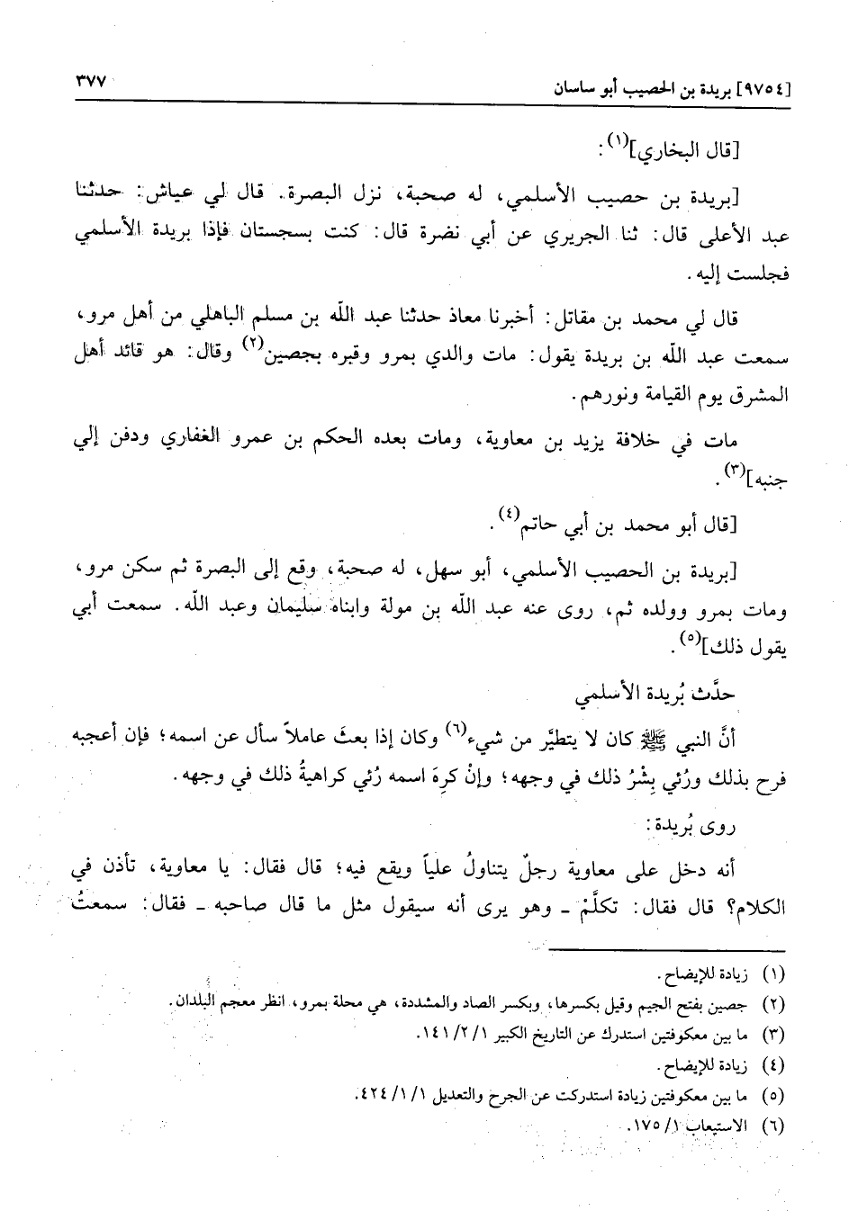 [قال البخاري] «1» : [بريدة بن حصيب الأسلمي، له صحبة، نزل البصرة. قال لي عياش: حدثنا عبد الأعلى قال: ثنا الجريري عن أبي نضرة قال: كنت بسجستان فإذا بريدة الأسلمي فجلست إليه.
