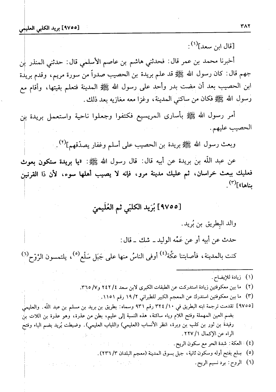 [9755] تقدمت ترجمة ابنه البطريق في 10/324 رقم 931 وسماه: بطريق بن بريد بن مسلم بن عبد الله. والعليمي بضم العين المهملة وفتح اللام وياء ساكنة، هذه النسبة إلى عليم، بطن من عذرة، وهو عذرة بن اللات بن رفيدة بن ثور بن كلب بن وبرة، انظر الأنساب (العليمي) واللباب العليمي) . وضبطت بريد بضم الباء وفتح الراء عن الإكمال 1/227.