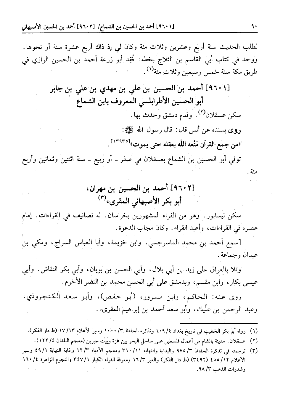 [9602] أحمد بن الحسين بن مهران، أبو بكر الأصبهاني المقرىء «3»