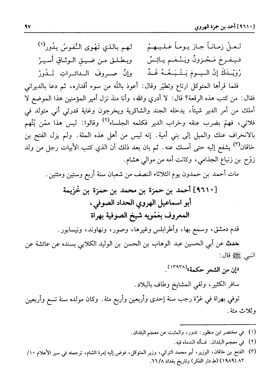 [9610] أحمد بن حمزة بن محمد بن حمزة بن خزيمة أبو اسماعيل الهروي الحداد الصوفي، المعروف بعمويه شيخ الصوفية بهراة