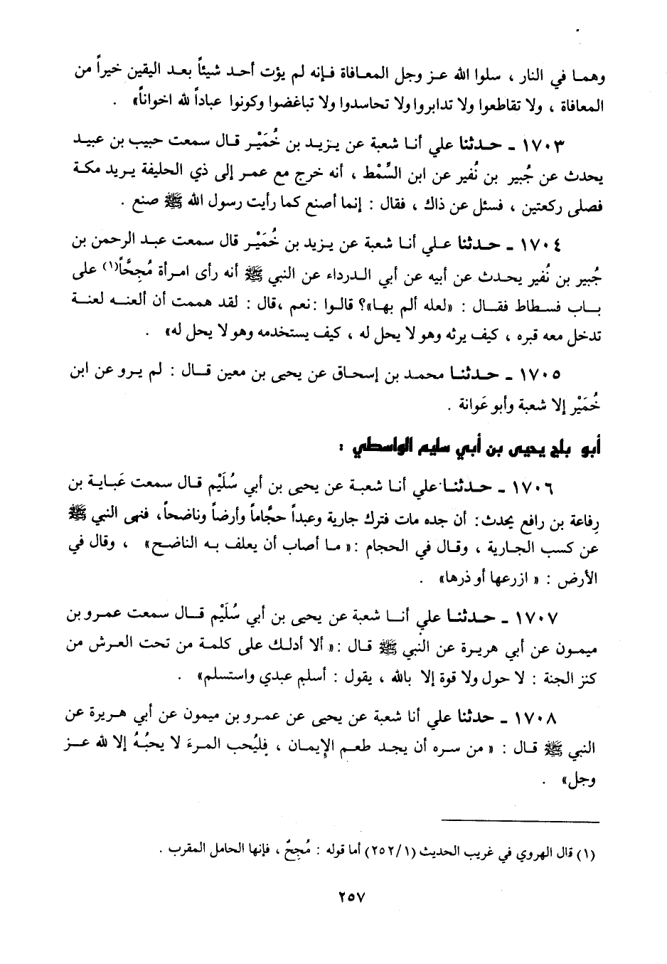 1705 - حَدَّثَنَا مُحَمَّدُ بْنُ إِسْحَاقَ، عَنْ يَحْيَى بْنِ مَعِينٍ قَالَ: لَمْ يَرْوِ عَنِ يَزِيدَ بْنِ خُمَيْرٍ إِلَّا شُعْبَةُ وَأَبُو عَوَانَةَ