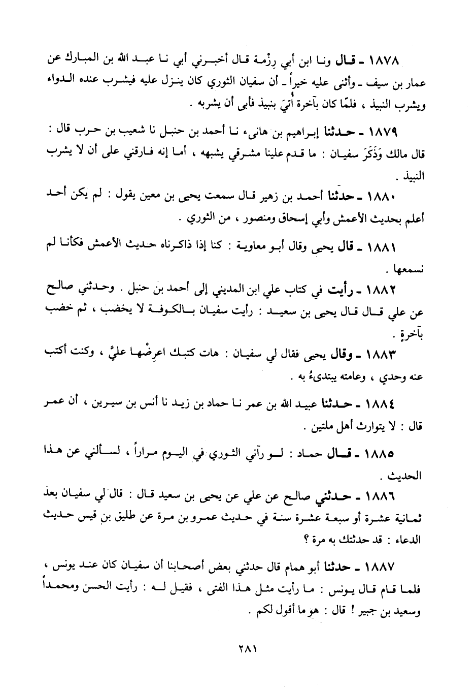 1885 - قَالَ حَمَّادٌ: لَوْ رَآنِي الثَّوْرِيُّ فِي الْيَوْمِ مِرَارًا لَسَأَلَنِي عَنْ هَذَا الْحَدِيثِ