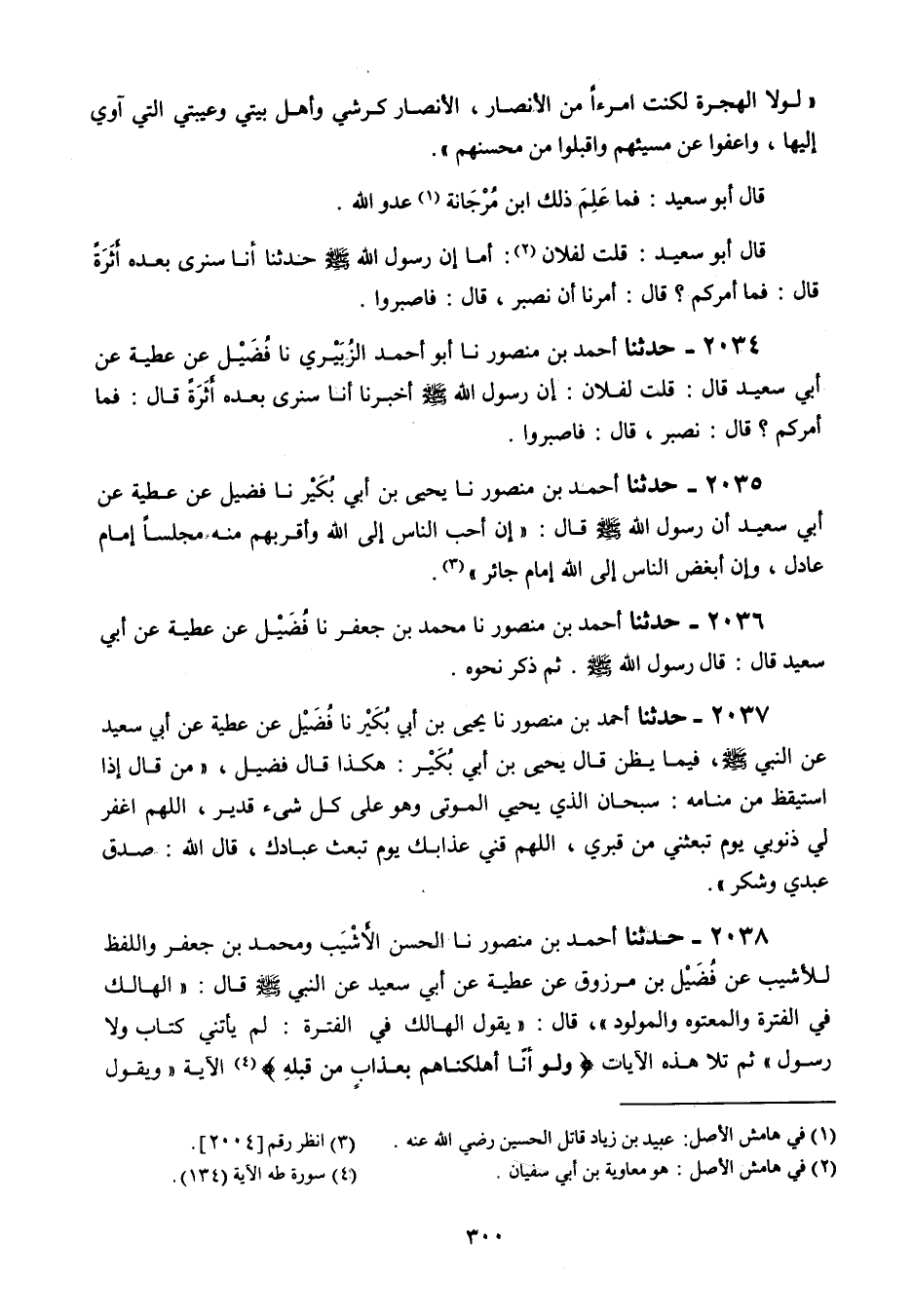 2034 - حَدَّثَنَا أَحْمَدُ بْنُ مَنْصُورٍ، نَا أَبُو أَحْمَدَ الزُّبَيْرِيُّ، نَا فُضَيْلٌ، عَنْ عَطِيَّةَ، عَنْ أَبِي سَعِيدٍ قَالَ: قُلْتُ لِفُلَانٍ: " إِنَّ رَسُولَ اللَّهِ صَلَّى اللهُ عَلَيْهِ وَسَلَّمَ أَخْبَرَنَا أَنَّا §سَنَرَى بَعْدَهُ أَثَرَةً قَالَ: فَمَا أَمَرَكُمْ قَالَ: «نَصْبِرُ» قَالَ: فَاصْبِرُوا