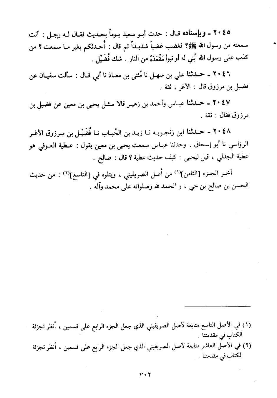 2048 - حَدَّثَنَا ابْنُ زَنْجَوَيْهِ، نَا زَيْدُ بْنُ الْحُبَابِ، نَا فُضَيْلُ بْنُ مَرْزُوقٍ الْأَغَرُّ الرُّؤَاسِيُّ، نَا أَبُو إِسْحَاقَ، وَحَدَّثَنَا عَبَّاسٌ، نا يَحْيَى بْنَ مَعِينٍ يَقُولُ: عَطِيَّةُ الْعَوْفِيُّ هُوَ عَطِيَّةُ الْجَدَلِيُّ، قِيلَ لِيَحْيَى: كَيْفَ حَدِيثُ عَطِيَّةَ قَالَ صَالِحٌ