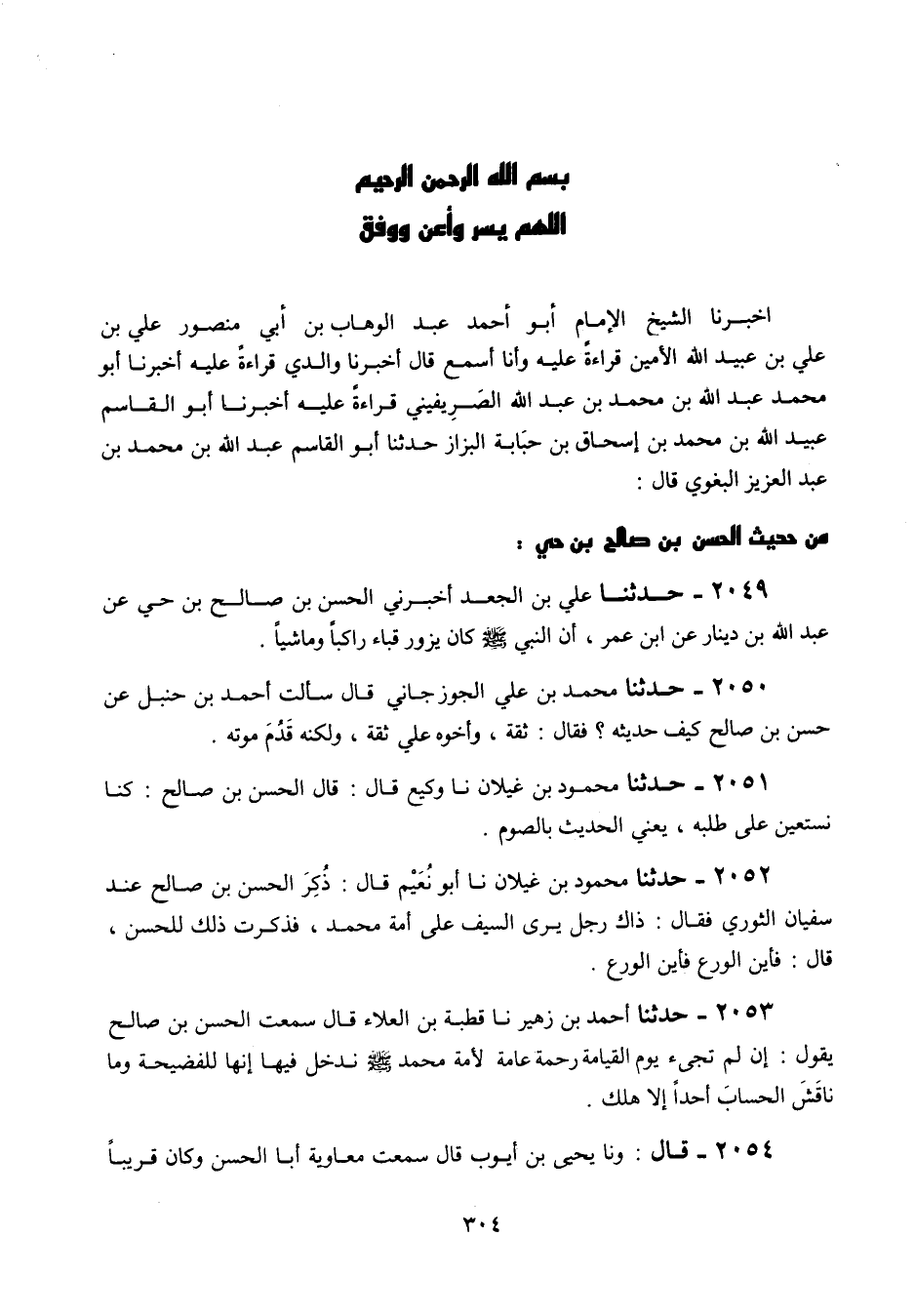 §مِنْ حَدِيثِ الْحَسَنِ بْنِ صَالِحِ بْنِ حَيٍّ