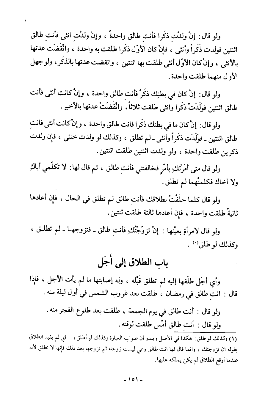 بَاب الطَّلَاق إِلَى أجل وَأي أجل طَلقهَا إليهلم تطلق قبله وَله إصابتها مَا لم بأت الجل فَإِذا قَالَ أَنْت طَالِق فِي رَمَضَان طلقت بعد غرُوب الشَّمْس فِي أول لَيْلَة مِنْهُ وَلَو قَالَ أَنْت طَالِق فِي يَوْم الْجُمُعَة طلقت بعد طُلُوع الْفجْر مِنْهُ وَلَو قَالَ أَنْت طَالِق أمس طلقت لوقته