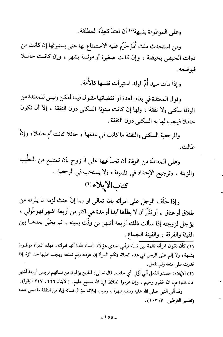 وعَلى الْمُعْتَدَّة من الْوَفَاة أَن تحد فِيهَا على الزَّوْج بِأَن تمْتَنع من الطّيب والزينة وترجيح الْإِحْدَاد فِي المبتوتة وَلَا يسْتَحبّ فِي الرَّجْعِيَّة = كتاب الْإِيلَاء
