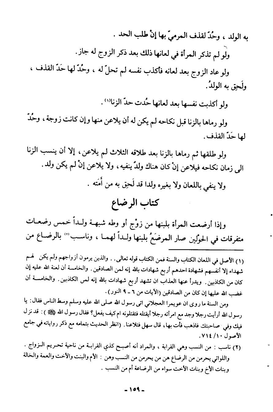 وَإِذا أرضعت الْمَرْأَة بلبنها من زوج أَو وَطْء شُبْهَة ولدا خمس رَضعَات متفرقات فِي الْحَوْلَيْنِ صَار الْمُرْضع بلبنها ولدا لَهما وناسب بِالرّضَاعِ من