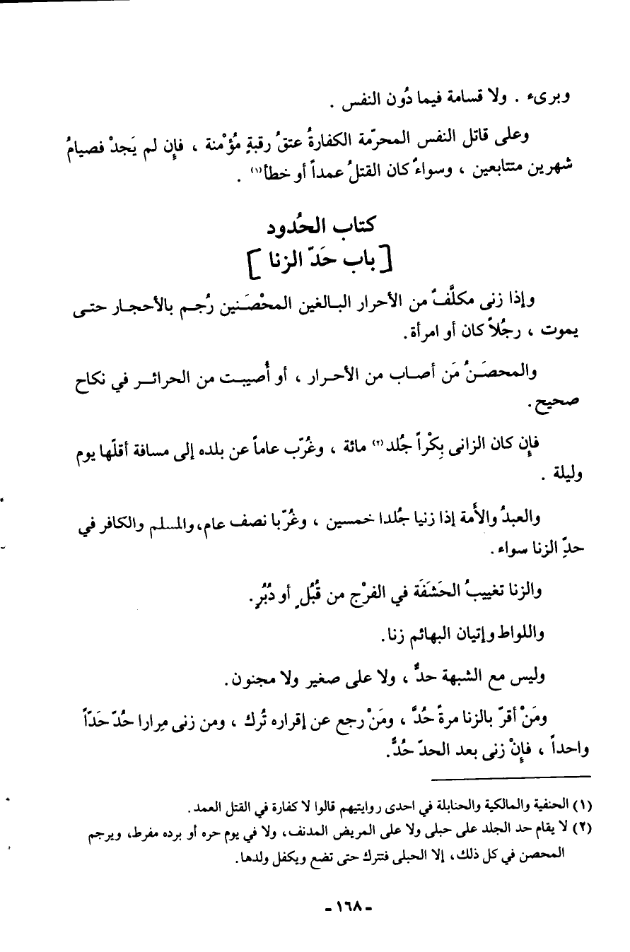وعَلى قَاتل النَّفس الْمُحرمَة الْكَفَّارَة عتق رَقَبَة مُؤمنَة فَإِن لم يجد فَصِيَام شَهْرَيْن مُتَتَابعين وَسَوَاء كَانَ الْقَتْل عمدا أَو خطأ = كتاب الْحُدُود - صَلَّى اللَّهُ عَلَيْهِ وَسَلَّم َ - بَاب حد الزِّنَا