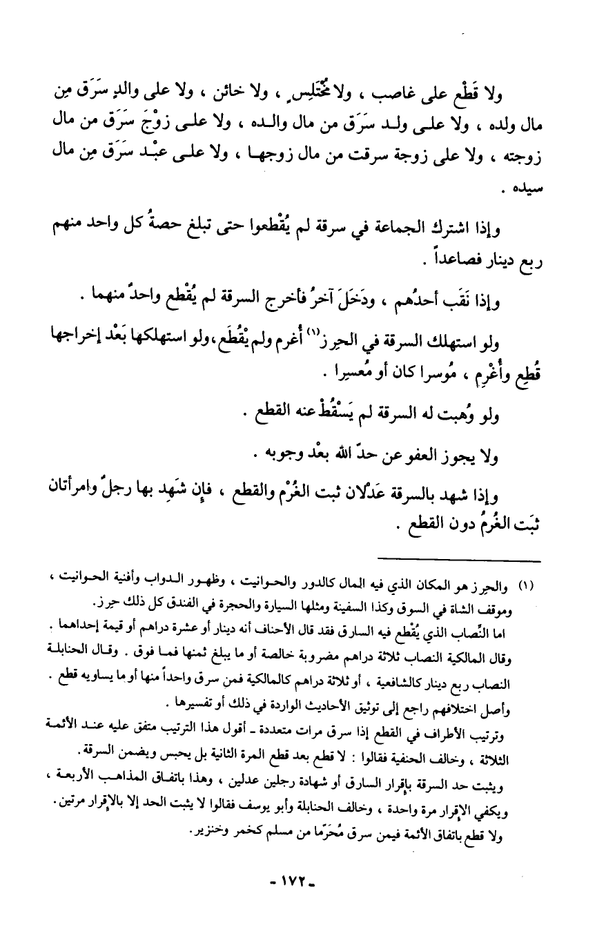 وَلَا قطع على غَاصِب وَلَا مختلس وَلَا خائن وَلَا علا وَالِد سرق من مَال وَلَده وَلَا على ولد سرق من مَال وَالِده وَلَا على زوج سرق من مَال زَوجته وَلَا على زَوْجَة سرقت من مَال زَوجهَا وَلَا على عبد سرق من مَال سَيّده