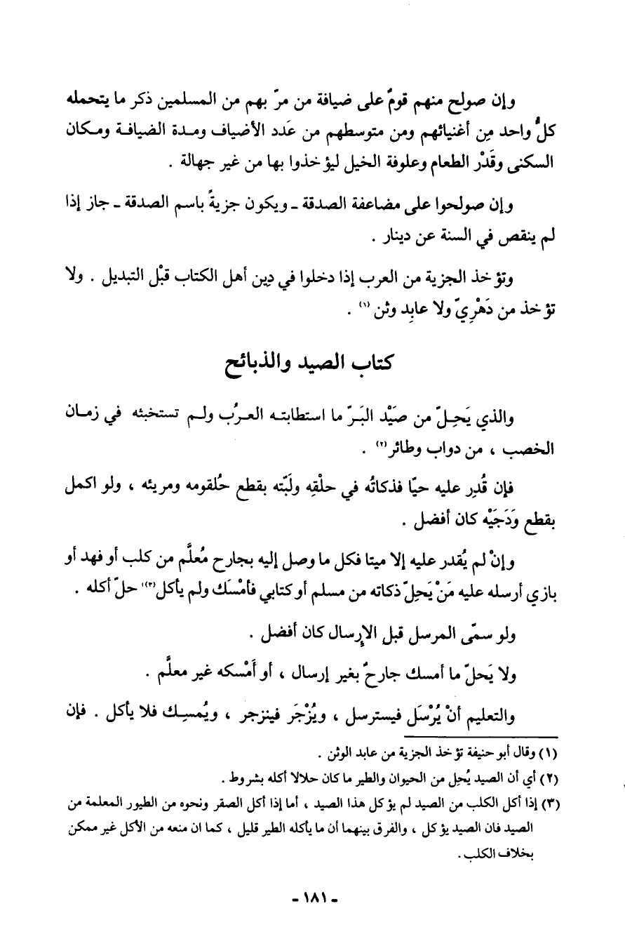 وَتُؤْخَذ الْجِزْيَة من الْعَرَب إِذا دخلُوا فِي دين أهل الْكتاب قبل التبديل وَلَا تُؤْخَذ من دهري وَلَا عَابِد وثن = كتاب الصَّيْد والذباح
