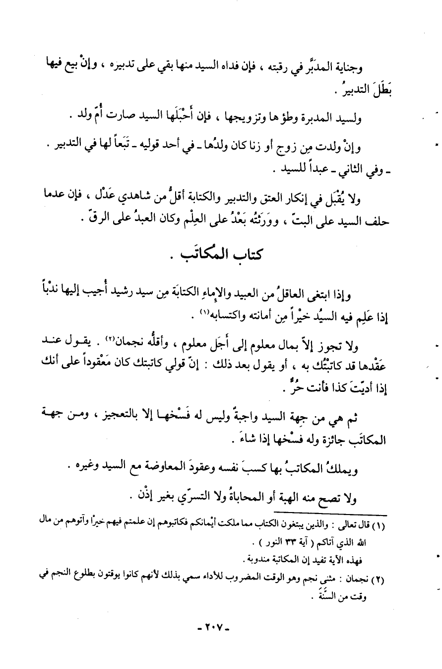 وَإِذا ابتغلا الْعَاقِل من العبيد وَالْإِمَاء الْكِتَابَة من سيد رشيد أُجِيب إِلَيْهَا ندبا إِذا علم فِيهِ السَّيِّد خيرا من أَمَانَته واكتسابه