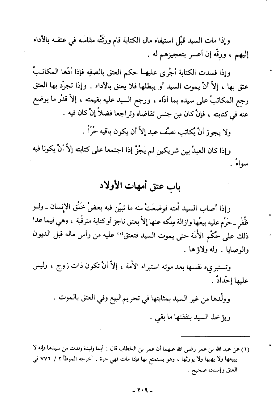 وَإِذا كَانَ العَبْد بَين شَرِيكَيْنِ لم يجز إِذا اجْتمعَا على كِتَابَته إِلَّا أَن يَكُونَا فِيهِ سَوَاء - صَلَّى اللَّهُ عَلَيْهِ وَسَلَّم َ - بَاب عتق أُمَّهَات الْأَوْلَاد