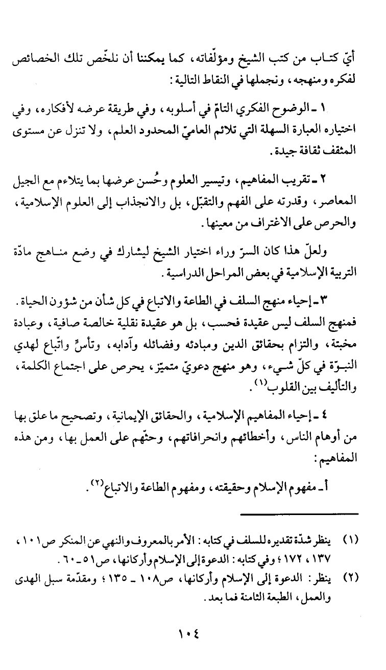أفي كتاب من كتب الشيخ ومؤئفاته، كما يمكننا أن نلخص تلك الخصائص