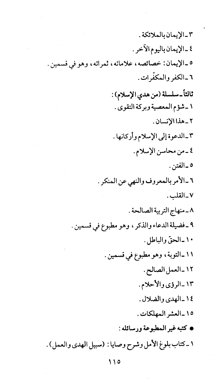 5 - الإيمان: خصائصه، علاماته، ثمراته، وهو في قسمين.