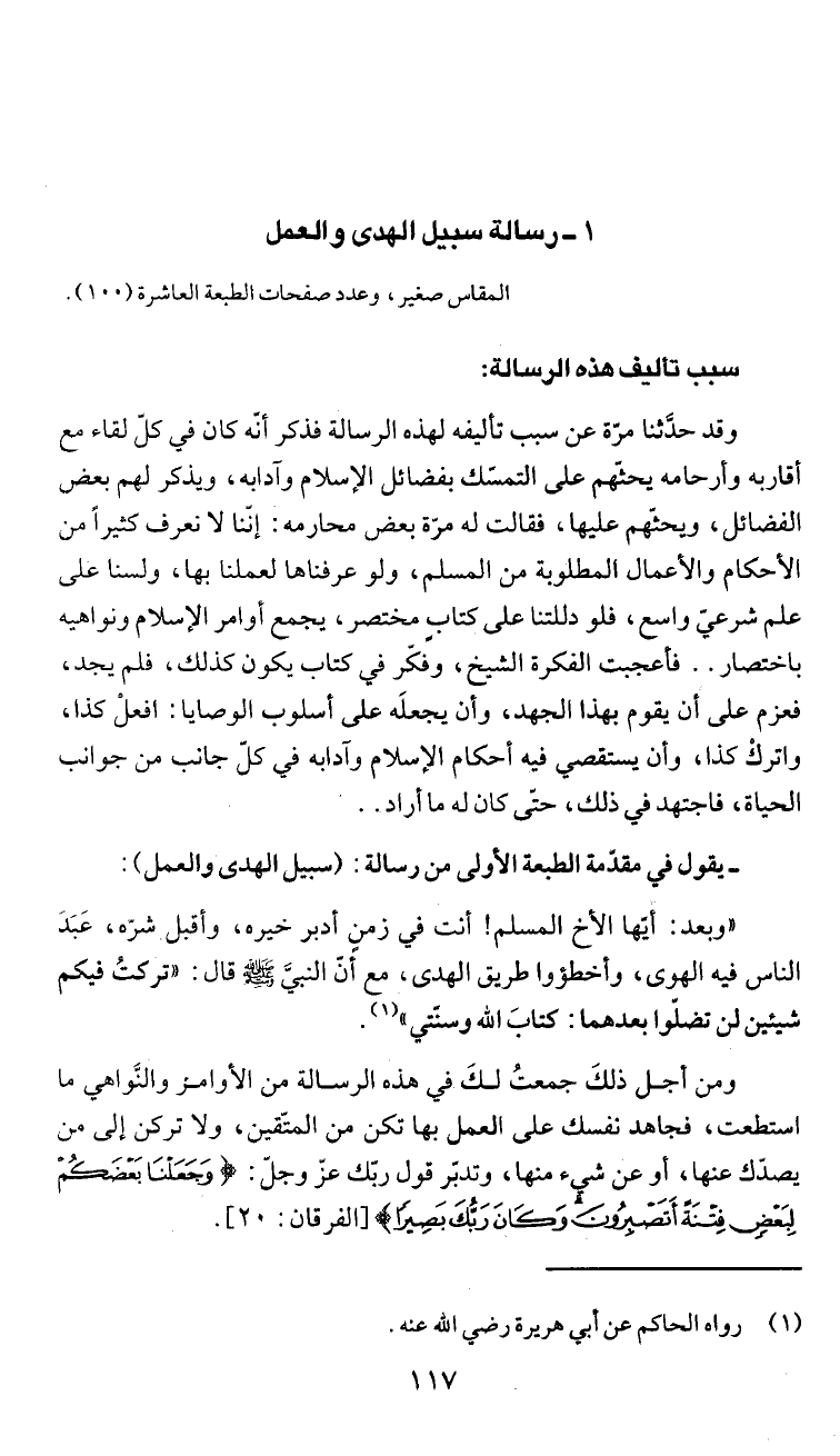 - يقول في مقذمة الطبعة الأولى من رسالة: (سبيل الهدى والعمل):