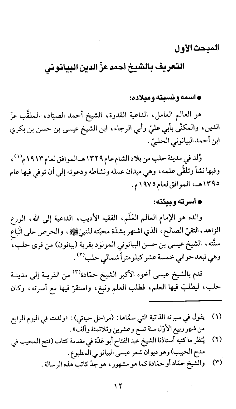 سنَته، الشيخ عيسى بن حسن البيانوني المولود بقرية (بيانون) من قرى حلب،