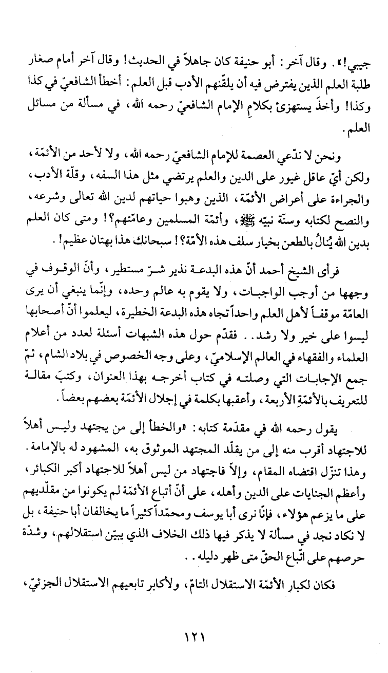 ونحن لا ندعي العصمة للإمام الشافعيّ رحمه الله، ولا لأحد من الأئمّة،