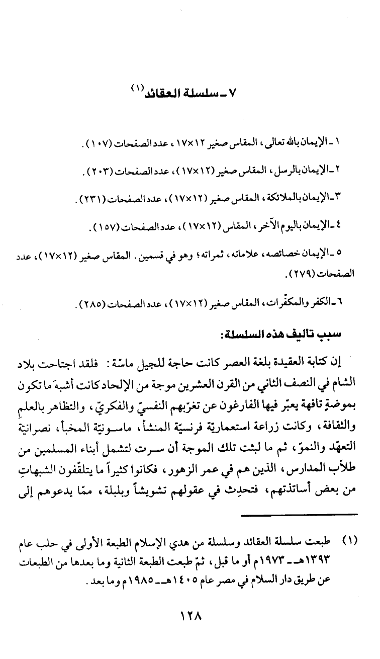 طبعت سلسلة العقائد وسلسلة من هدي الإسلام الطبعة الأولى في حلب عام