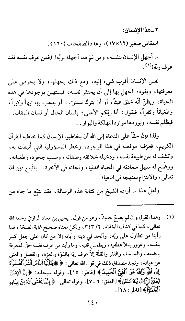 ما أجهل الإنسان بنفسه، ومن ثئم فما اجهله برثه! (فمن عرف نفسه فقد