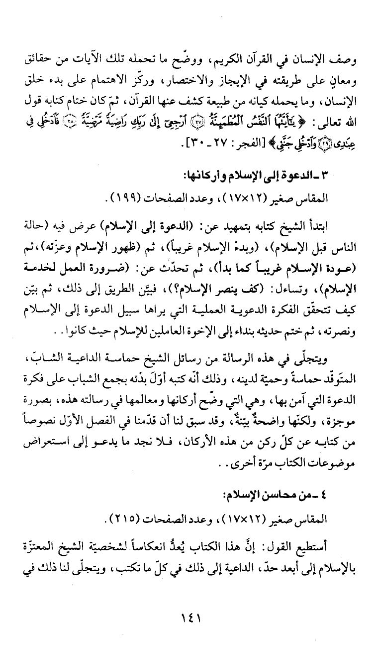 الإسلام)، وتساءل: (كف ينصر الأسلام؟)، فبثن الطريق إلى ذلك، ثم بيّن