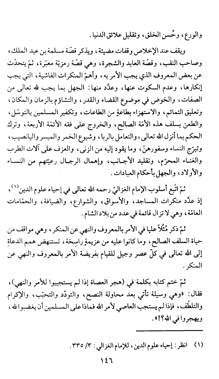 ثمّ اتّبع أسلوب الإمام الغزاليّ رحمه الله تعالى في إحياء علوم الدين (1)،
