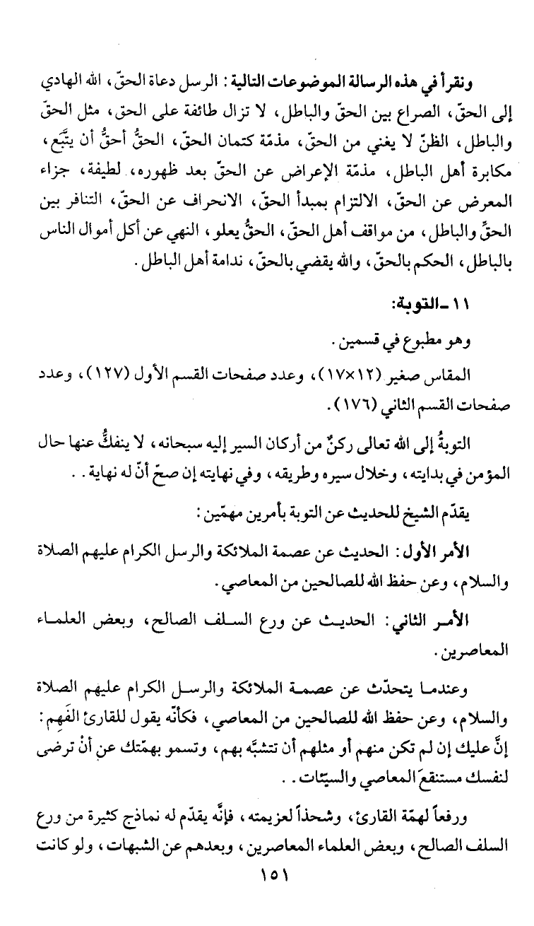 المقاس صغير (12 *17)، وعدد صفحات القسم الأول (27 1)، وعدد