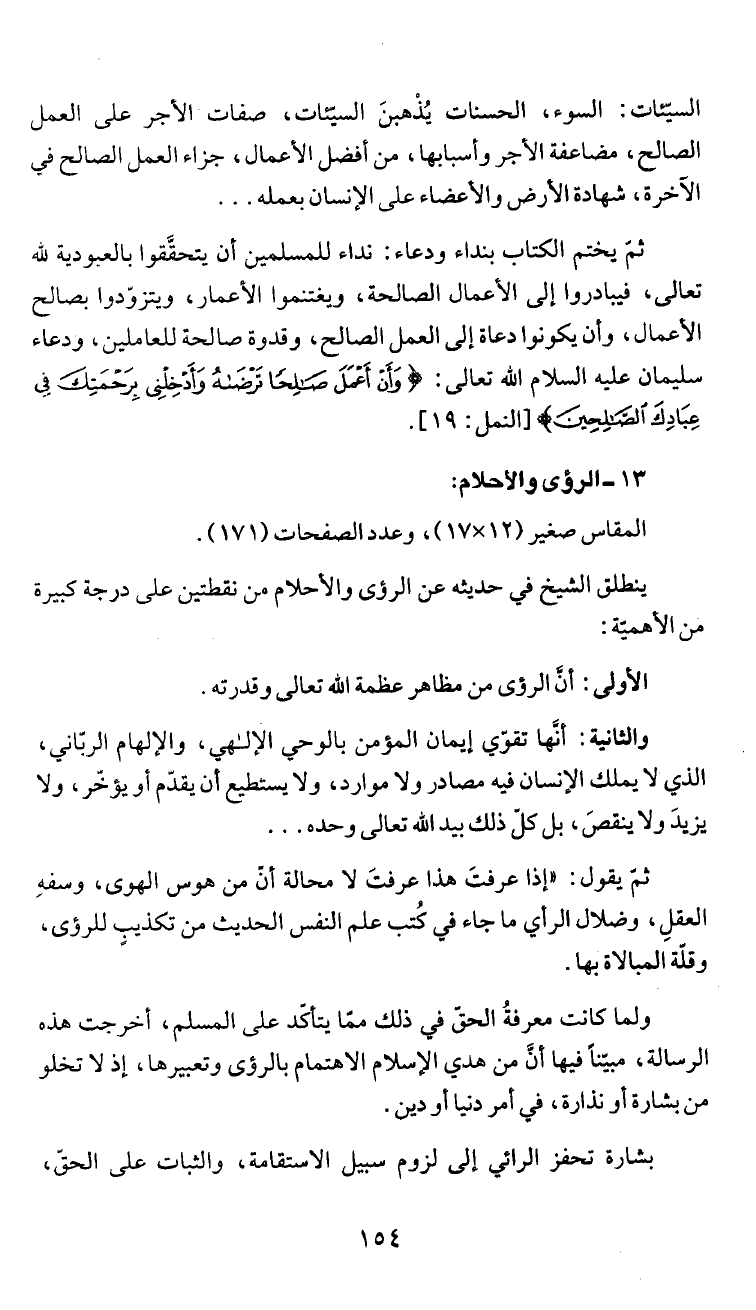 العقلِ، وضلال الرأي ما جاء في كُتب علم النفس الحديث من تكذيب للرؤى،