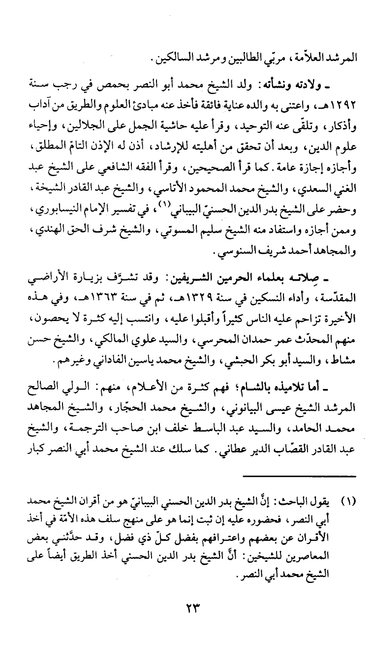 يقول الباحث: إن الثيخ بدر الدين الحسني البيبانيئ هو من أقران الثيخ محمد