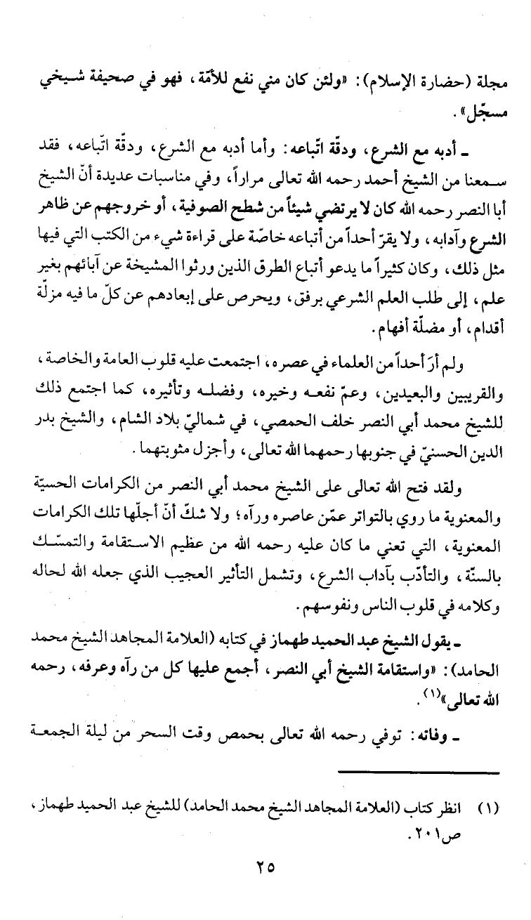 انظر كتاب (العلامة المجاهد الشيخ محمد الحامد) للشيخ عبد الحميد طهماز،