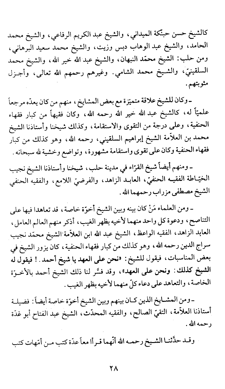 كالشيخ حسن حبنكة الميداني، والشيخ عبد الكريم الرفاعي، والشيخ محمد