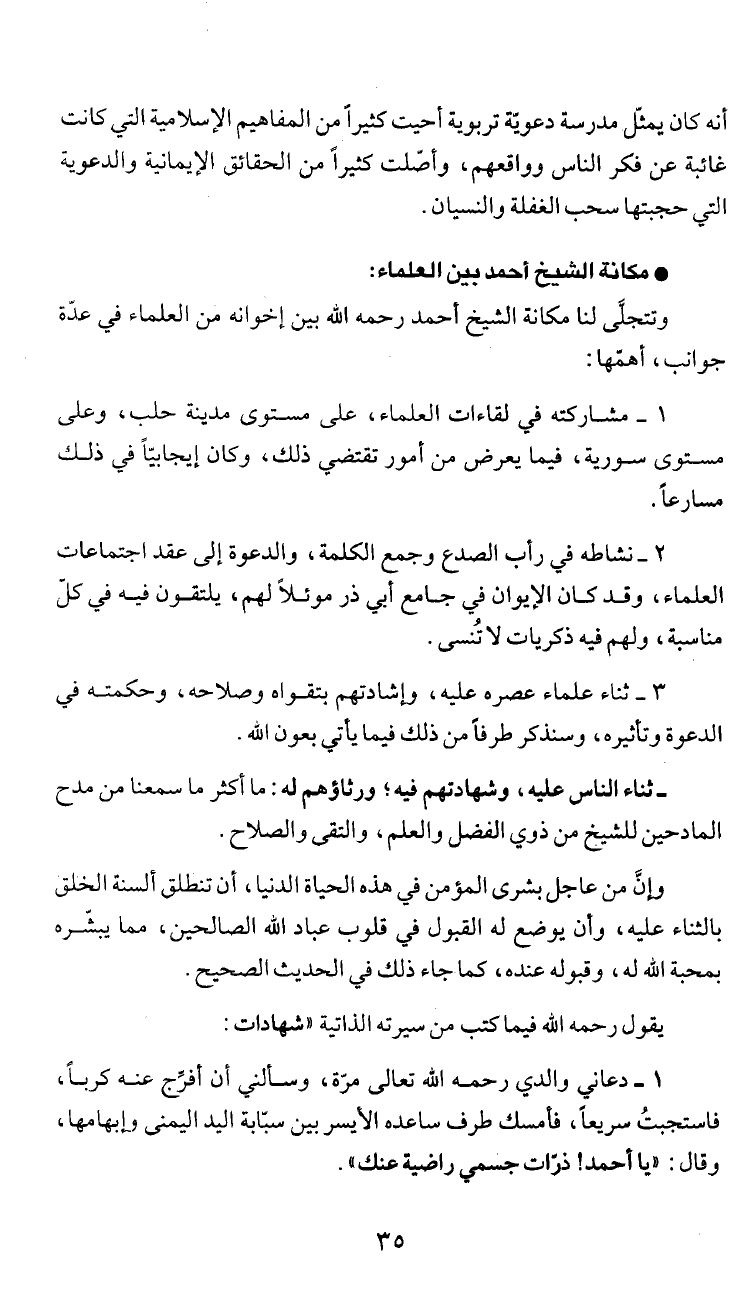 وتتج! ى لنا مكانة الشيخ احمد رحمه الله بين إخوانه من العلماء في ىدّه