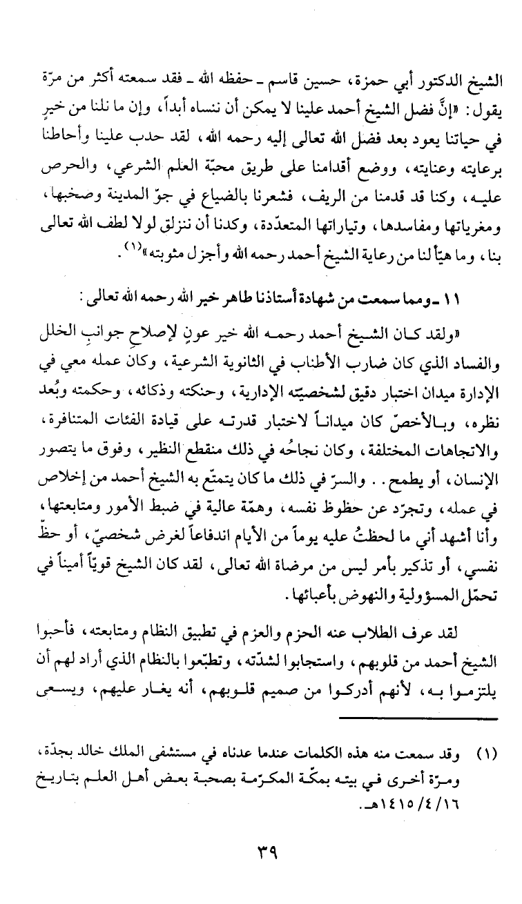 1 1 - ومما سمعت من شهادة استاذنا طاهر خير ا ل! ه رحمه ا لله تعالى: