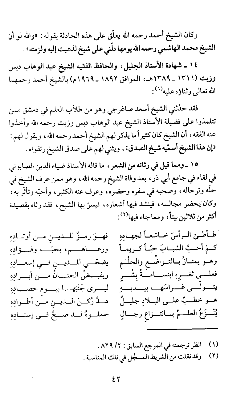 14 - شهادة الأستاذ الجليل، والحافظ الفقيه الشيخ عبد الوهاب دبس