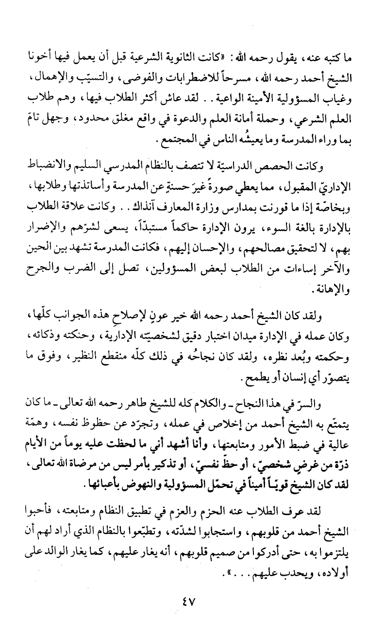 يتمتعّ به الشيخ أحمد من إخلاص في عمله، وتجرّد عن حظوظ نفسه، وهمّة