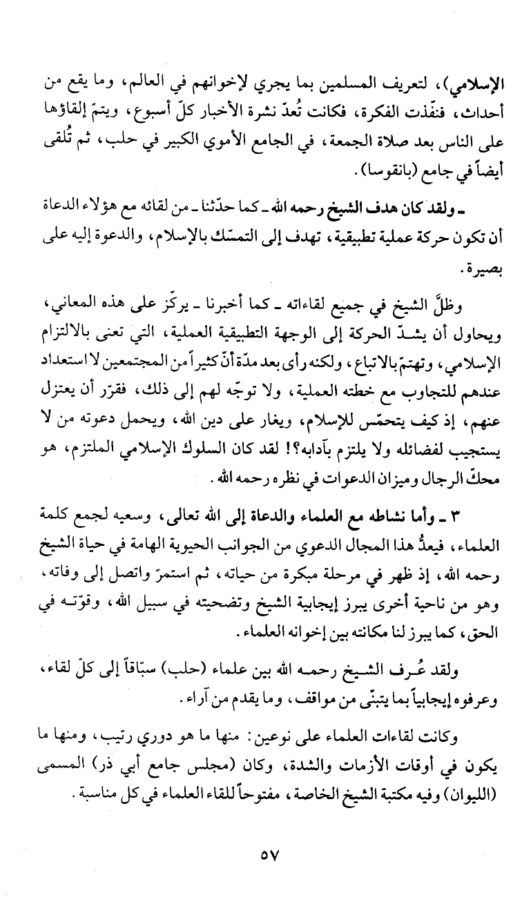 3 - وأما نشاطه مع العلماء والدعاة إلى الله نعالى، وسعي! لجمع كلمة