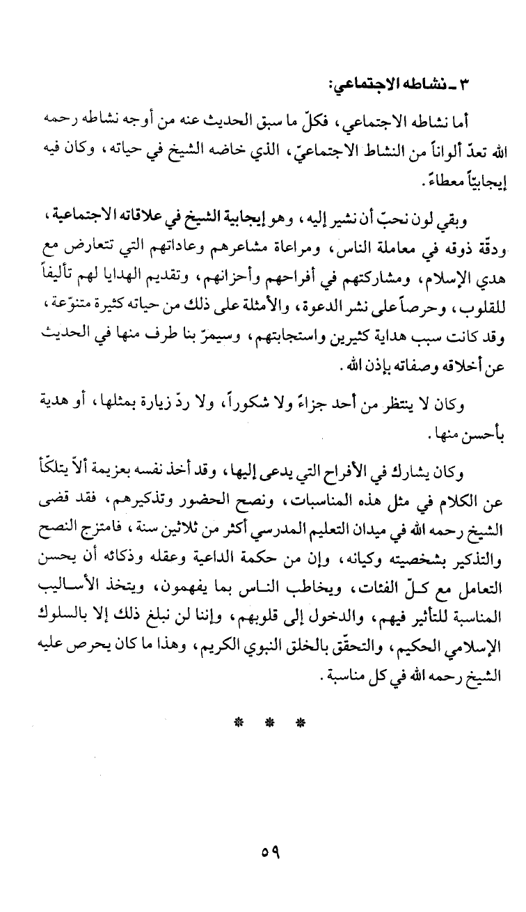 وبقي لون نحث ان نشير إ ليه، وهو ايجابية الثيخ في علاقاته ا لاجتماعية،