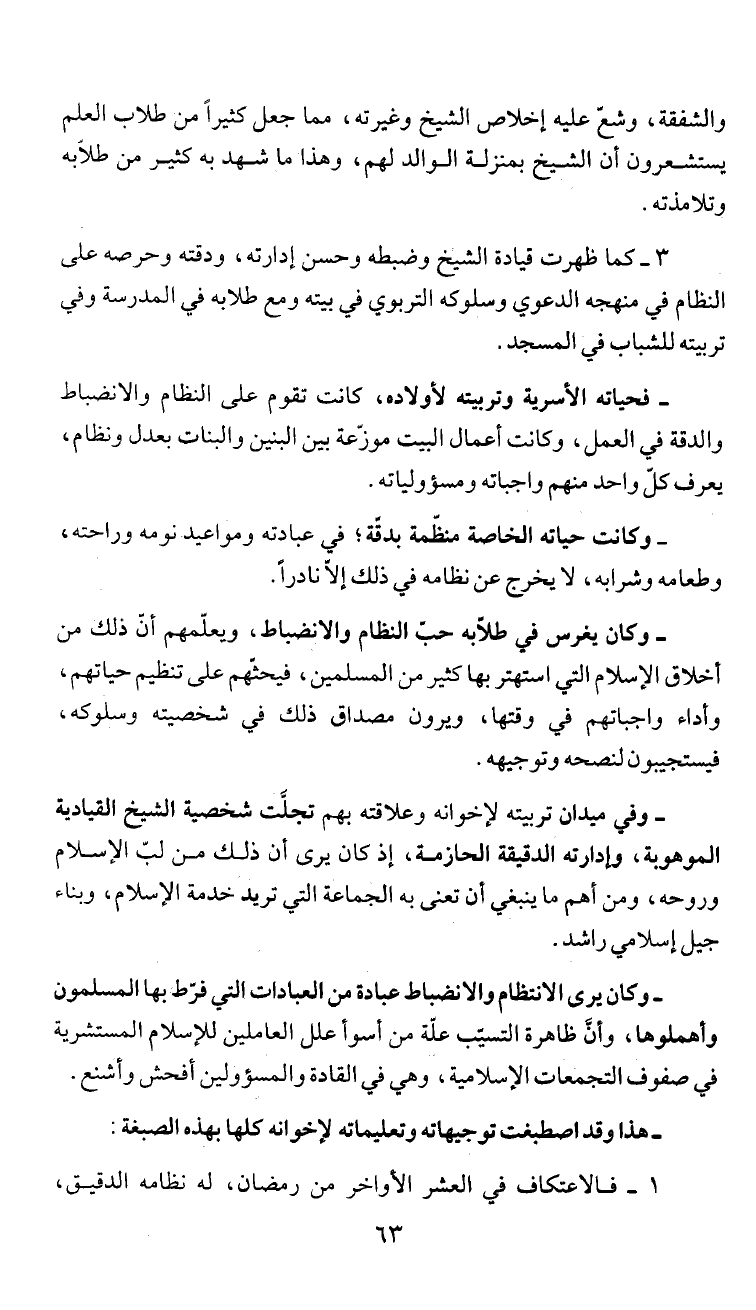 النظام في منهجه الدعوي وسلوكه التربوي في بيته ومع طلابه في المدرسة و!