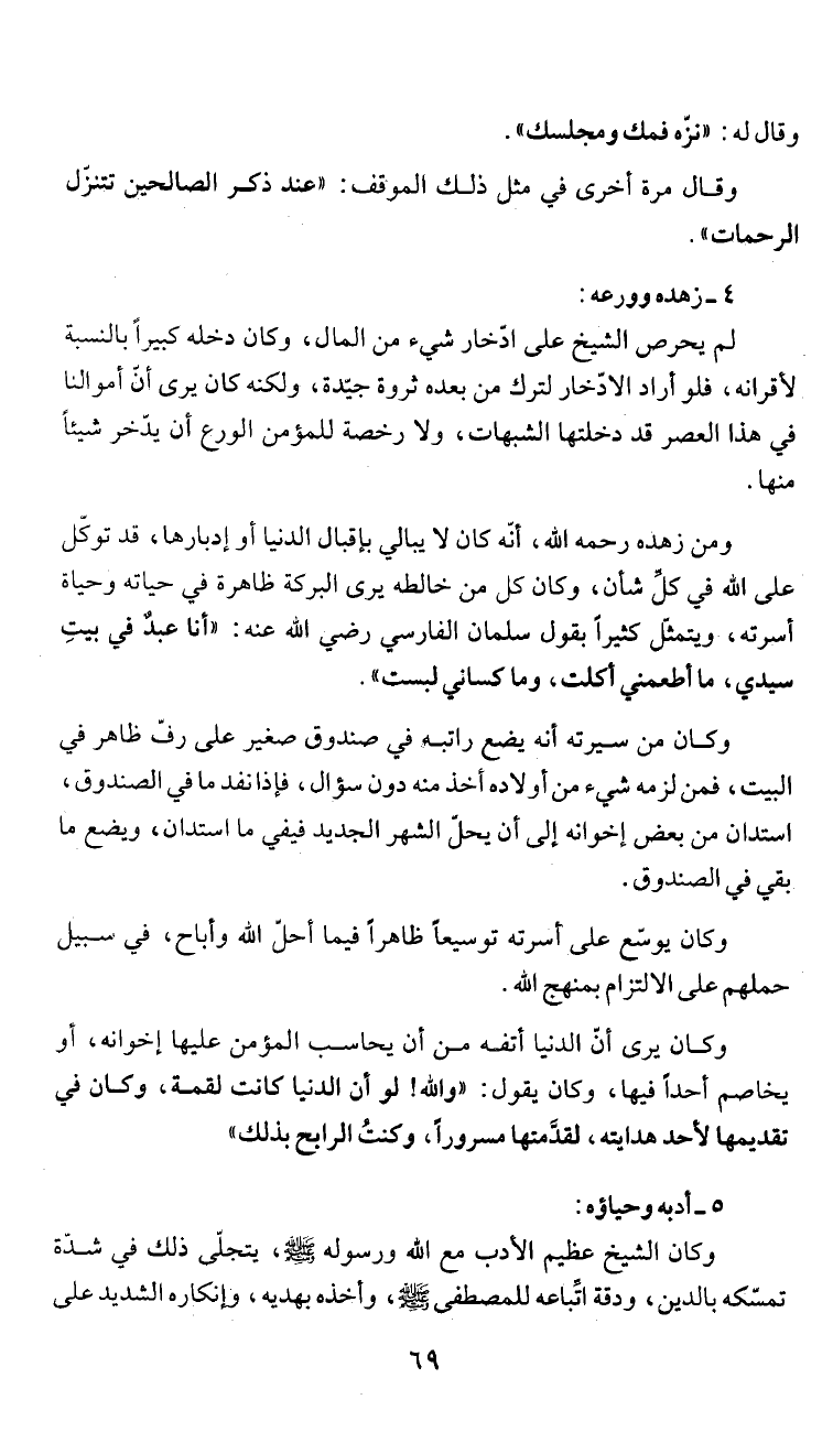 وكان من سيرته انه يضع راتبه في صندوق صغير على رفّ ظاهر في