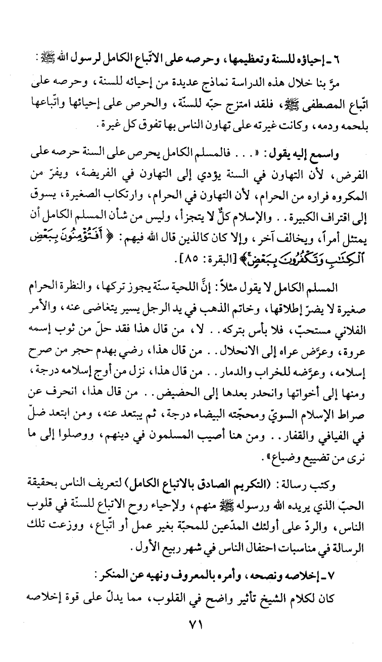 واسمع اليه يقول: ". . . فالمسلم الكامل يحرص على السنة حرصه على