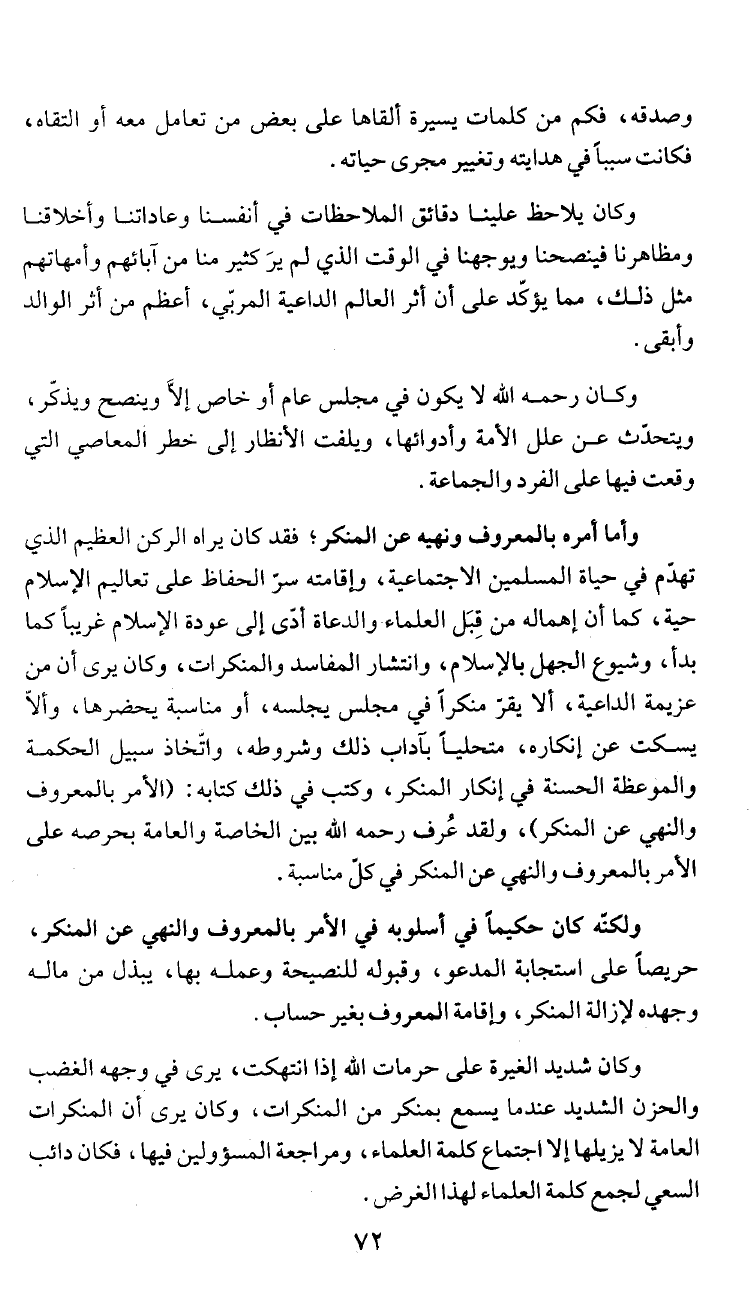 والنهي عن المنكر)، ولقد عُرف رحمه الله بين الخاصة والعامة بحرصه على