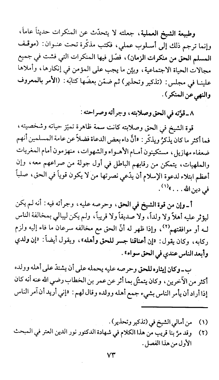أ - وإن من قوة الشيخ في الحق، وحرصه عليه، وجرأ ته فيه: أنه لم يكن