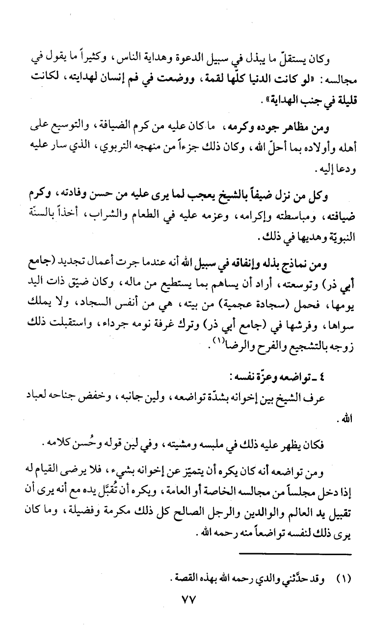 وكان يستقل ما يبذل في سبيل الدعوة وهداية الناس، وكثيرإً ما يقول في