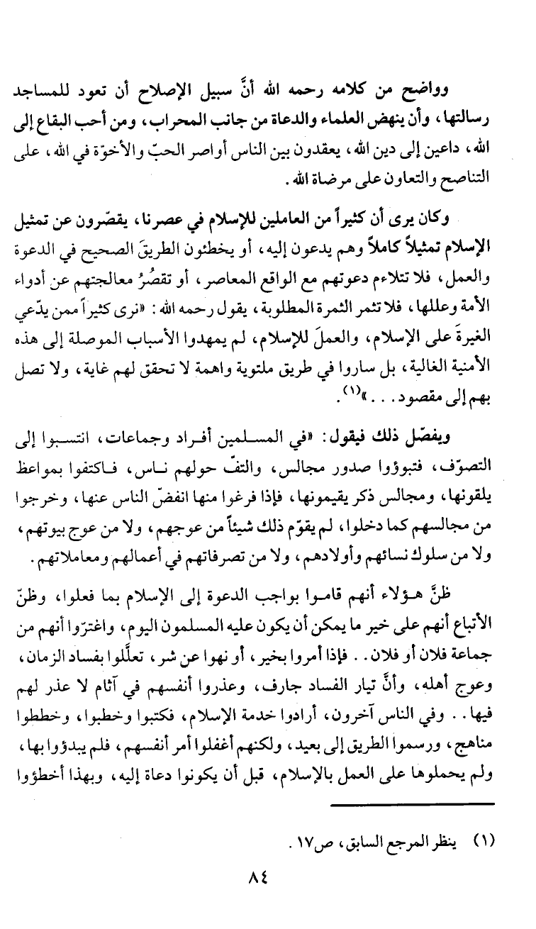 وواضح من كلامه رحمه الله آن سبيل الإصلاح ان تعود للمساجد