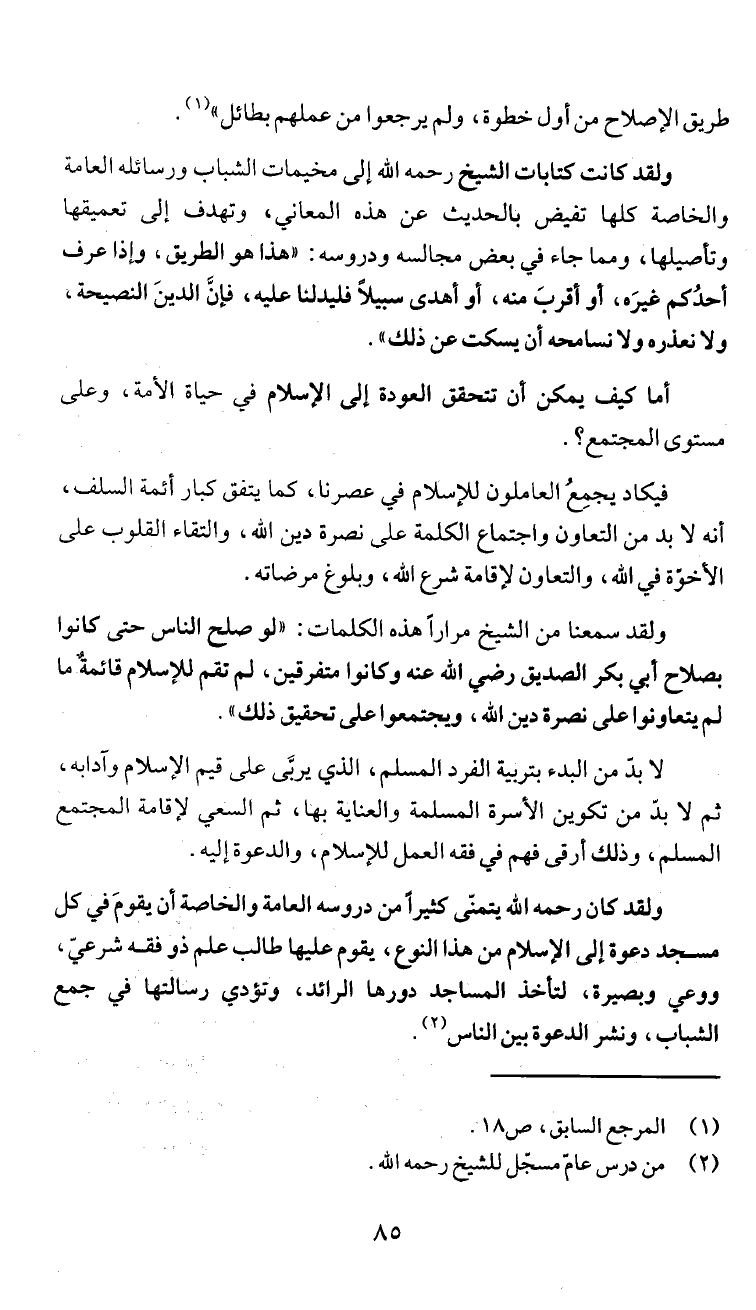 ولقد كانت كتابات الشيخ رحمه اللّه إ لى مخيمات الشباب ورسائله العامة