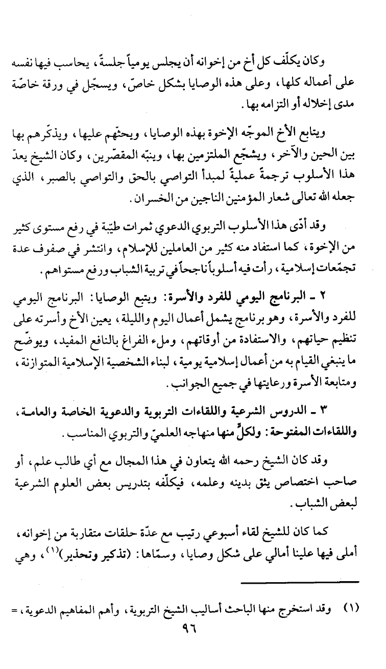 وكإن يكفف كل اخ من إخوانه أن يجلس يومياً جلسةً، يحاسب فيها نفسه
