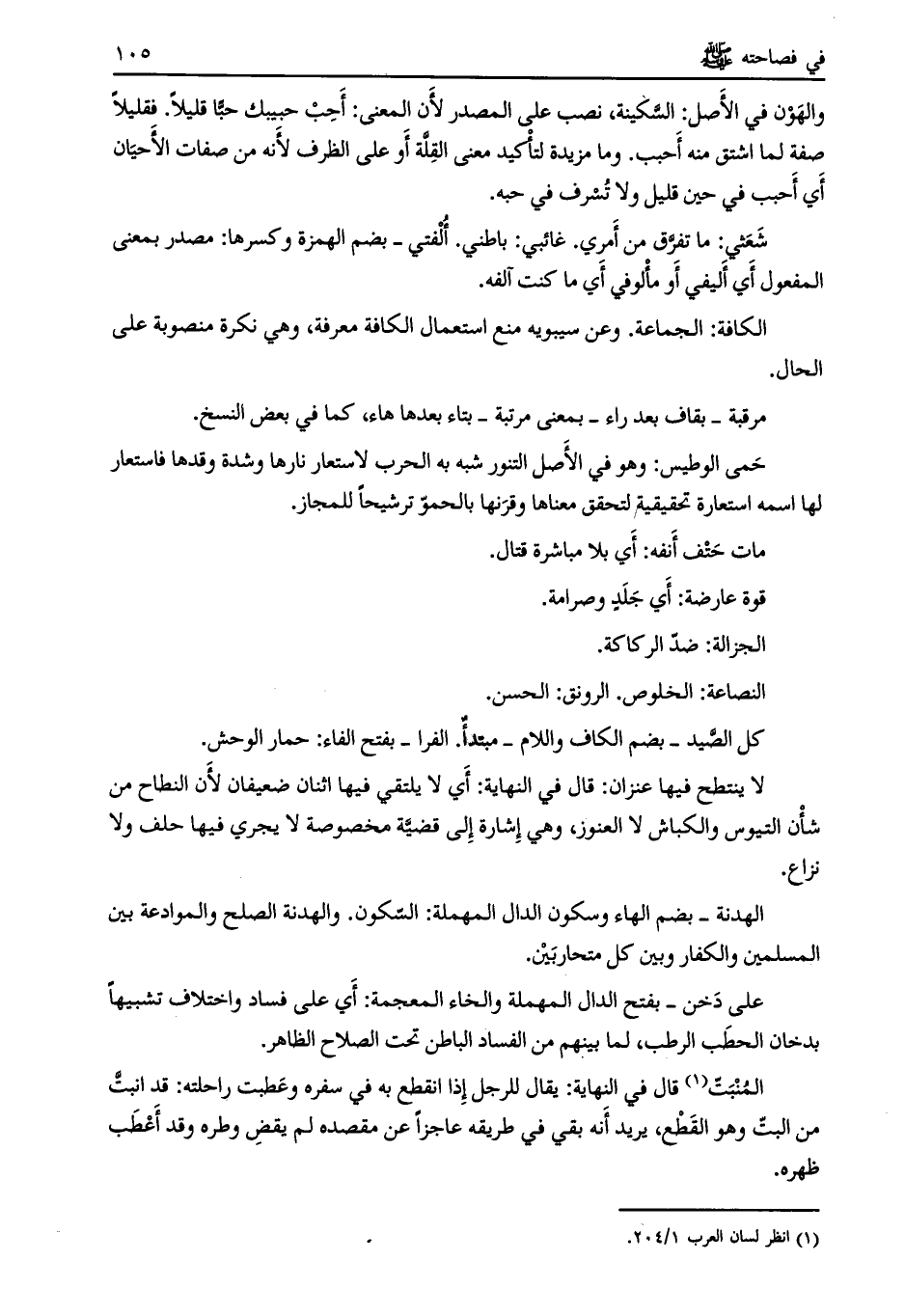 والهون في الأصل: السكينة، نصب على المصدر لأن المعنى: أحب حبيبك حبا قليلا. فقليلا صفة لما اشتق منه أحبب. وما مزيدة لتأكيد معنى القلة أو على الظرف لأنه من صفات الأحيان أي أحبب في حين قليل ولا تسرف في حبه.